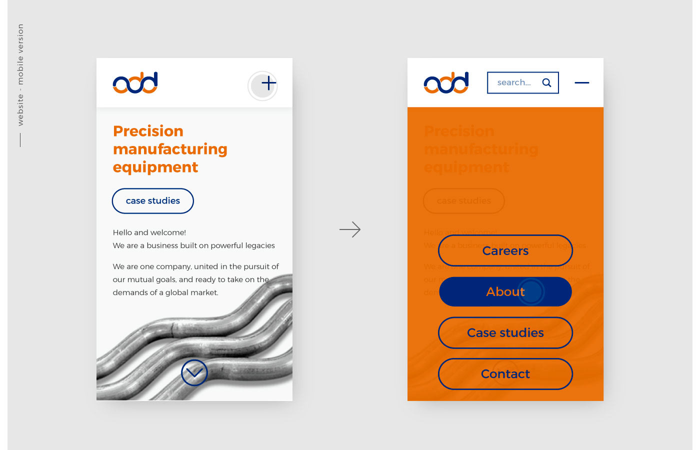 I replaced the "hamburguer" menu with one of the brand graphic elements, also an universal symbol. The plus symbol " + " which means more (obviously). And when the menu is active, the plus symbol turns into the minus " - " symbol, representing the meaning of less. You know, if you want to see more, press the plus icon, if you want to see less, press the minus icon, is as simple as that.