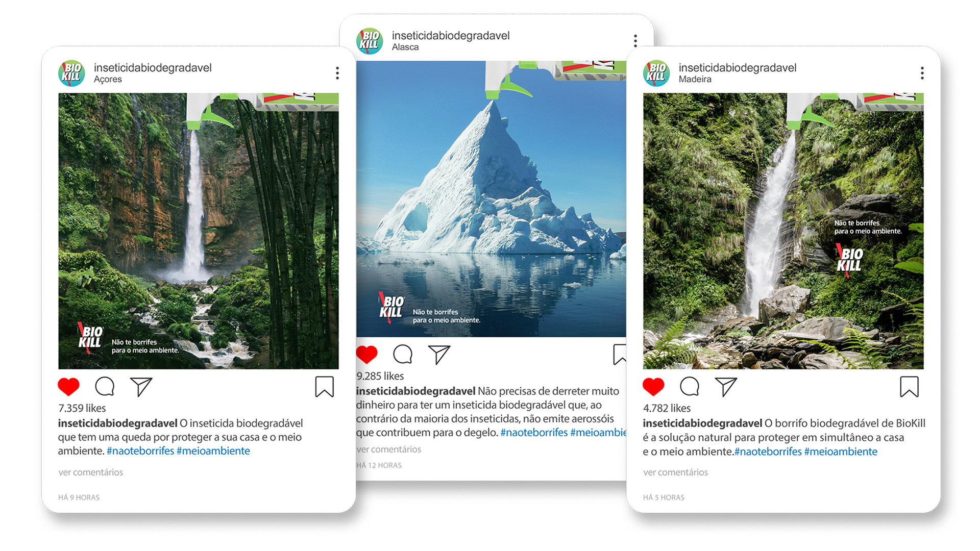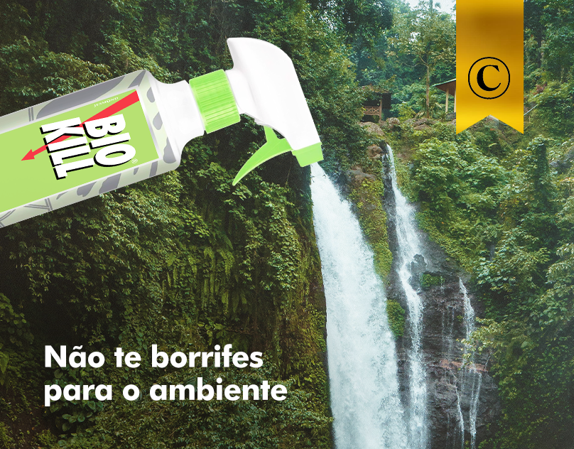 Conceito: Tendo em conta que a maioria dos inseticidas emitem aerossóis responsáveis pelo efeito de estufa - que contribuem para o aquecimento global. Vamos mostrar que, sendo o Biokill um inseticida biodegeradável, esta é a única marca que não se borrifa para o meio ambiente.