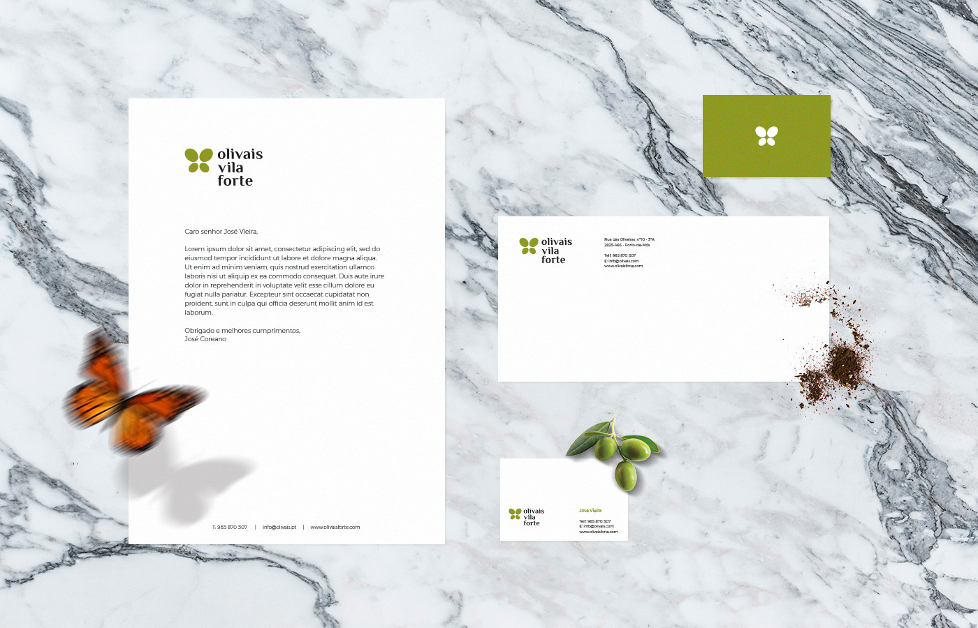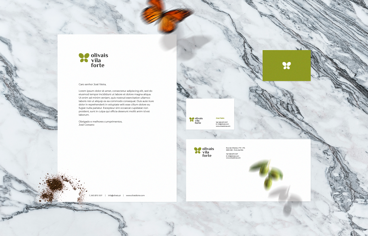The client wanted a butterfly present in the logo to suggest the presence of insects in his olive groves, which are a sign of healthy environment practice, meaning chemical products are not present in olive groves.